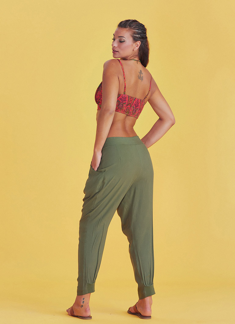 Ağı Düşük Dar Paça Haki Pileli Pantolon 5216