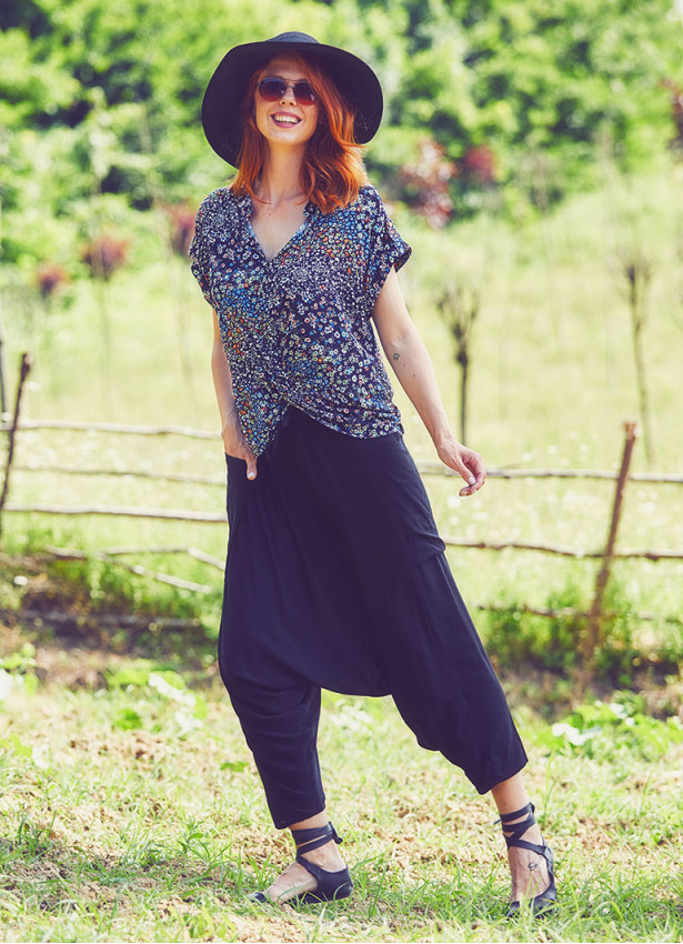 Beli Bağcıklı Cepli Siyah Kapri Şalvar Pantolon 276