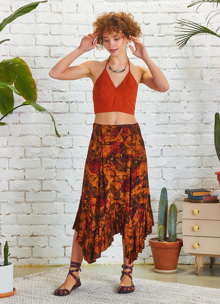 Asimetrik Kesim Volanlı Etek Ucu, Yan Gipeli Elastik Bel Detay, Yazlık, Midi Etek