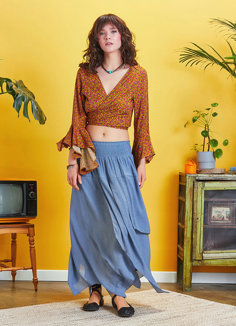 Gipeli Elastik Bel Kemeri, Kat Detaylı, Parçalı, Salaş, Uzun Etek