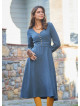 Düğme Detaylı, V Yaka, Etek Fırfır Lastikli, Uzun Kollu, Dar Kesim Midi Elbise