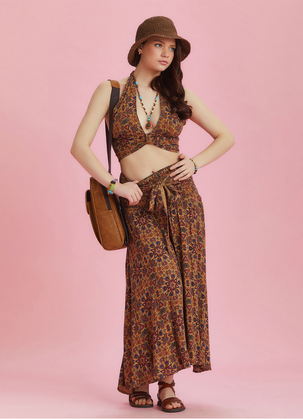 Boyundan Bağlamalı Mor Desenli Crop Bluz 6342