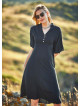 Dik V Yaka, Ön Düğme Detaylı, Gizli Yan Fermuar Kapatmalı, Yarım Kol Elbise