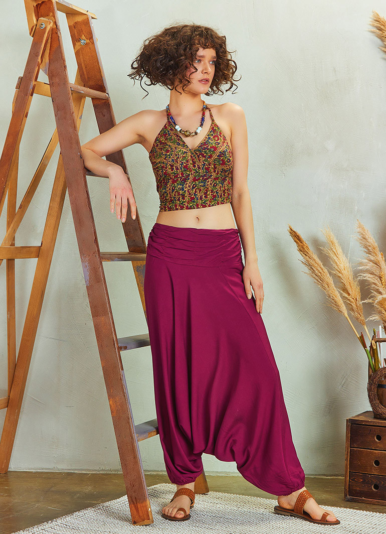Drapeli Geniş Bel Detay, Paçası Lastikli, Dökümlü, Şalvar Pantolon