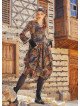 Şık, V Yaka, Balon Etek Detaylı, Karat Desenli Elbise