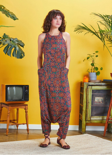 Dekolteli Fermuarlı Cepli Kadın Otantik Şalvar Tulum 5236