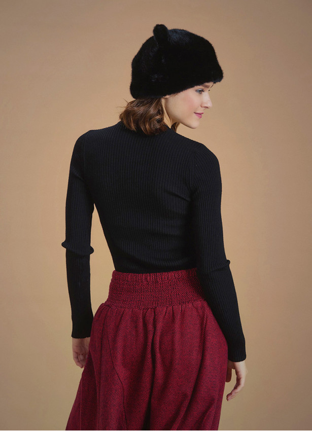 U Yaka Kedi Figürlü Düğme Detaylı Siyah Bohem Elbise 6823