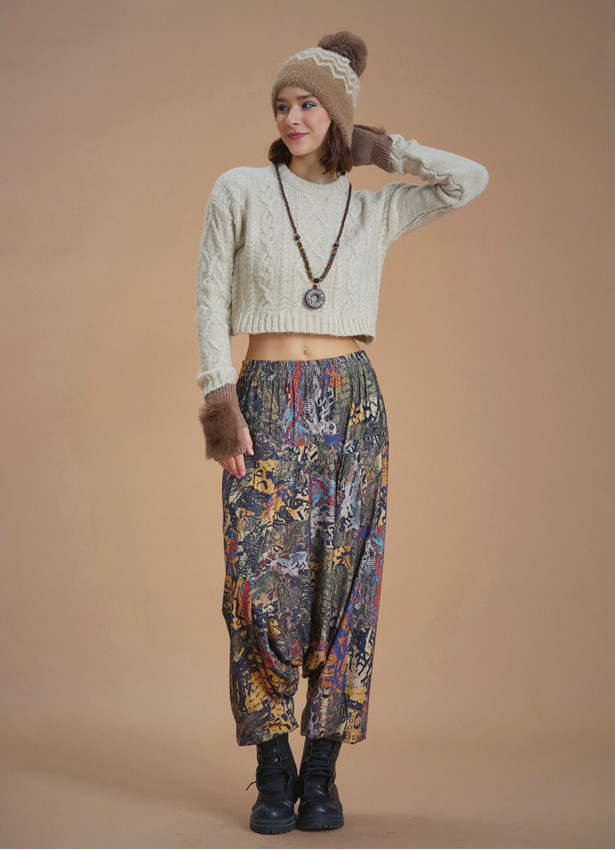 Lastikli Bel ve Paça Otantik Desenli Şalvar Pantolon 6681