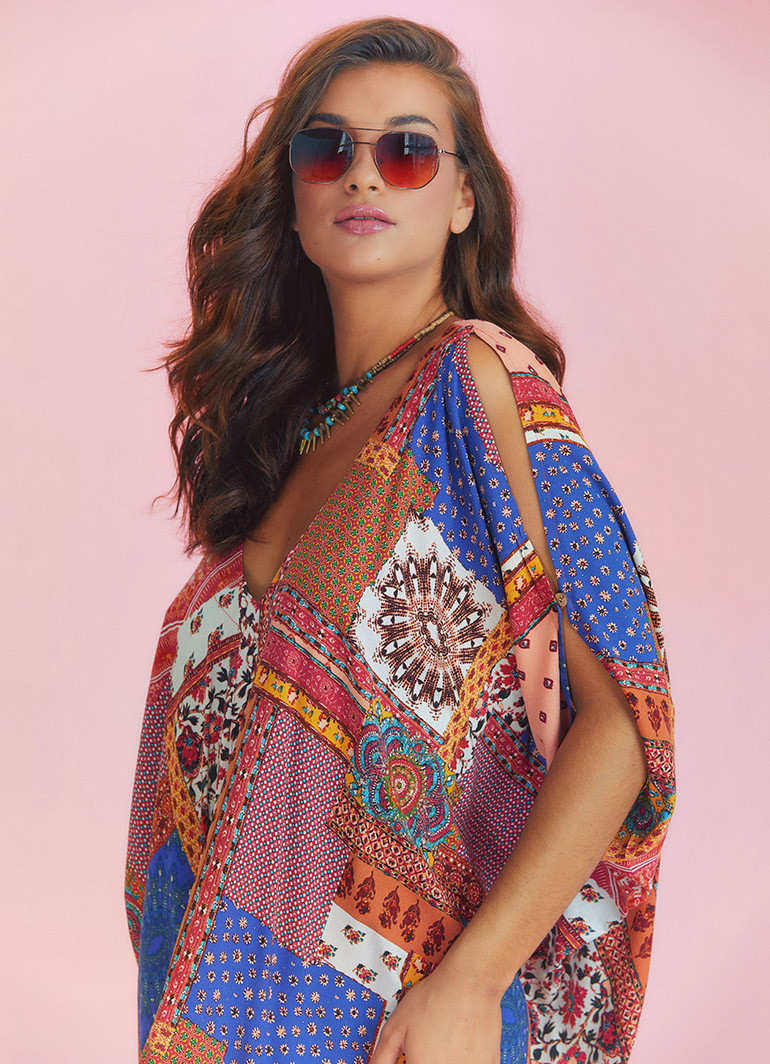 Etnik Desenli, Bohem Tarz, Kayık Yaka, Omzu Açık, Sırt Dekolteli, Otantik Kadın Yazlık Elbise.
