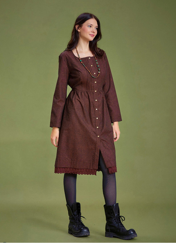 Dantel Detaylı, Düğmeli, Kışlık, Uzun Kollu, Kadın Elbise