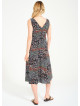 V Yaka, Ön Arka Büzgü Detaylı, Ayarlanabilir Bel Bağcıklı, Midi Boy, Kolsuz, Viskon Elbise