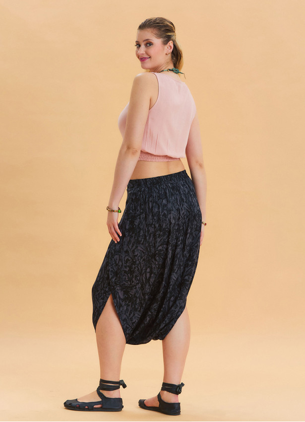Düşük bel ve asimetrik kesimi sayesinde vücudu zarifçe saran bu şalvar, bohem stilinize rahatlık ve dinamizm getiriyor.
