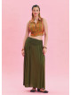 Özenle oluşturulan drape detayları ve beli lastikli yapısı, etek üzerinde zarif bir siluet yaratırken, haki tonları modern stilinize bohem bir dokunuş katar.