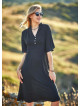 Düğme Detaylı V Yaka Yarım Kol Siyah Yazlık Elbise 6767