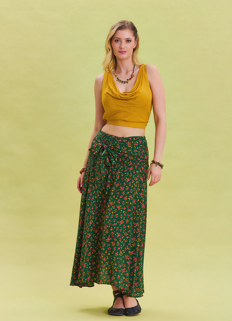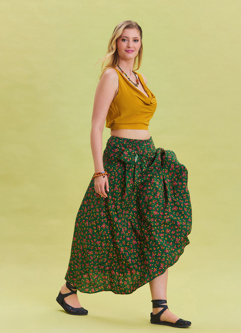 Gipe Belden Bağlamalı Yeşil Desenli Etnik Etek 6833, modern ve özgün tasarımıyla gardırobunuzda fark yaratacak bir parçadır. Etnik esinli dokunuşları, şıklığı ve rahatlığı bir arada sunar.