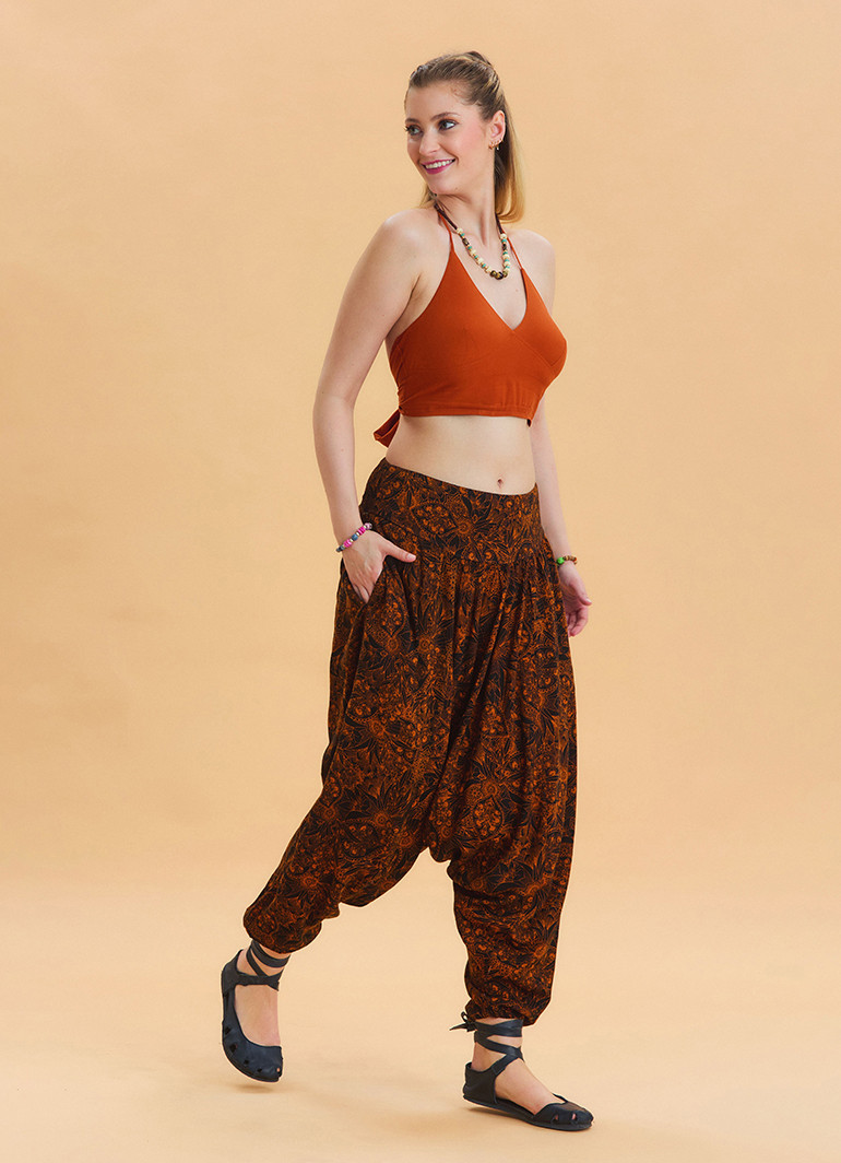 Gipe detaylı pacası, lastikli paçası ve cepleri ile öne çıkan turuncu kadın şalvar, modern tasarımıyla stilinize enerji katıyor. Canlı rengi ve özgün detayları, gardırobunuzda fark yaratacak.