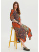 Gömlek yaka detayları ve kemer vurgusuyla öne çıkan bu kahve desenli salaş elbise, zarafet ve rahatlığı bir araya getiriyor.