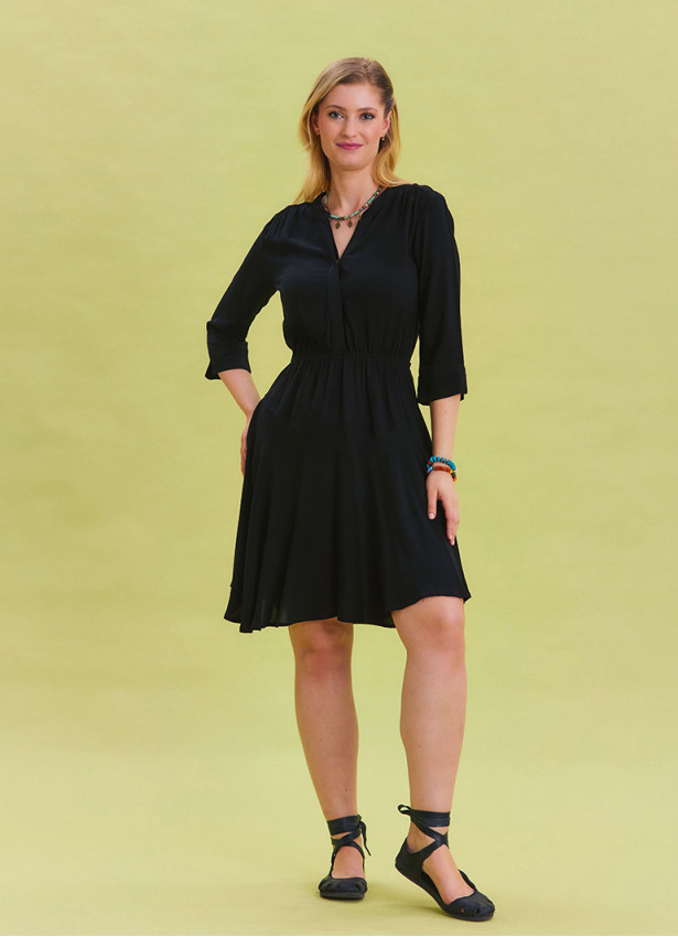 %100 dokuma viskon kumaşı sayesinde nefes alabilen ve terletmeyen bu elbise, yaz ve bahar aylarında ferah bir kullanım sunar. Doğal selüloz yapısı, cildinizde konforu hissetmenizi sağlar.