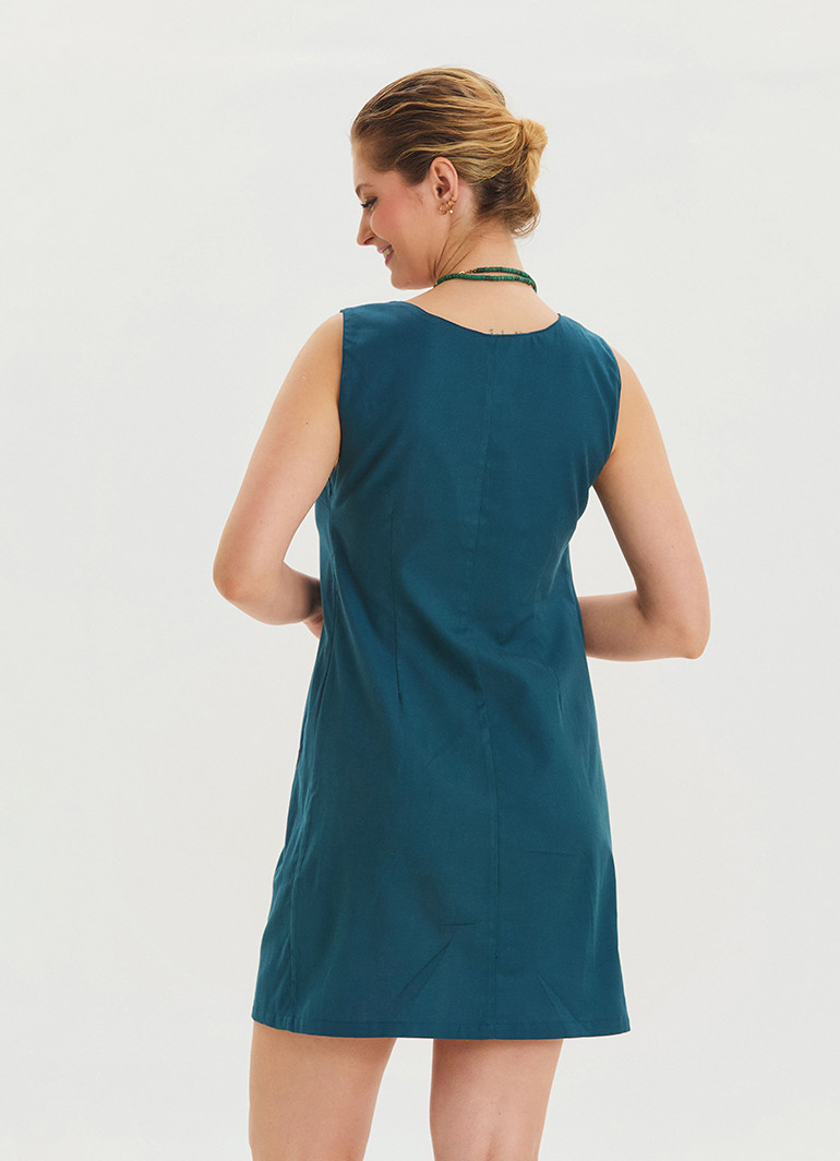 Özenle seçilmiş %100 dokuma pamuk kumaşı sayesinde terletmeyen yapısı, yaz aylarında bile ferah bir kullanım sunar. U yaka ve düğme detayları, elbiseye zarif bir dokunuş katar.