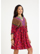 Canlı kırmızı çiçek desenleri, modern ve dinamik görünümü desteklerken, yaz mevsiminin enerjisini yansıtıyor. Rahat kesimi ve uyumlu beden seçenekleri ile her vücut tipine hitap eden bu elbise, stil sahibi kadınların vazgeçilmezi olmaya aday.