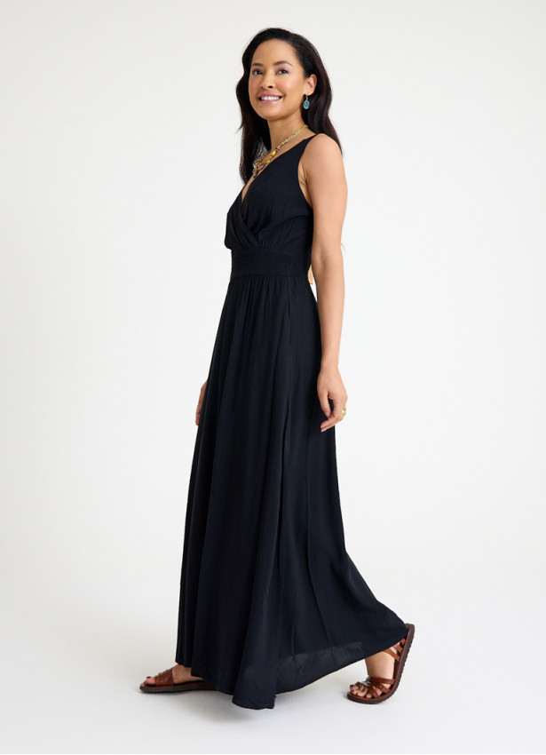 Şıklığı ve zarafeti bir arada sunan V Yaka Robadan Kruvaze Siyah Uzun Elbise 6880, modern kadının gardırobuna eşsiz bir dokunuş katar. V yaka ve kruvaze kesimi, vücut hatlarınızı ön plana çıkarırken, yırtmaç detay sayesinde hareket özgürlüğü sağlar.