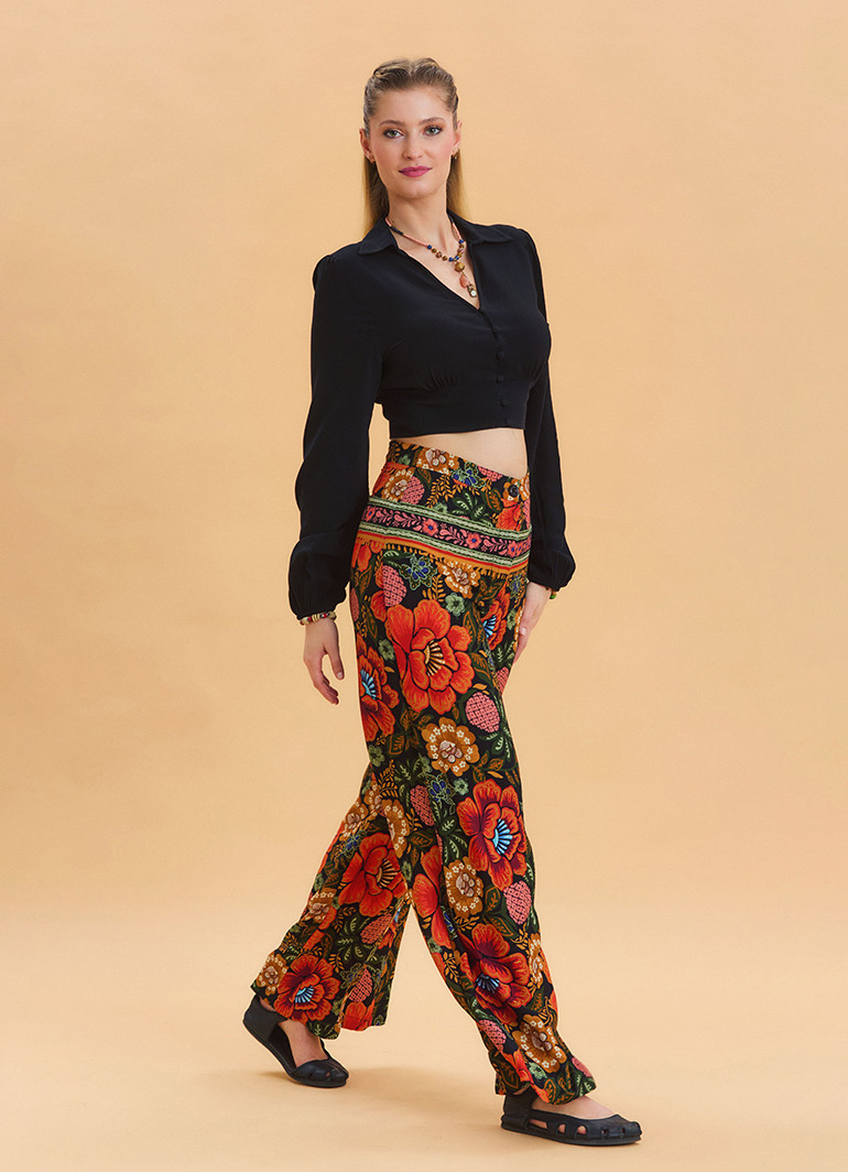 Yüksek bel bol kesim siyah palazzo pantolon 6857, modern kadın stiline zarafet ve konfor katmak üzere tasarlanmıştır. Şık tasarımı ve özgün detaylarıyla günlük ve özel anlarınızda fark yaratır.