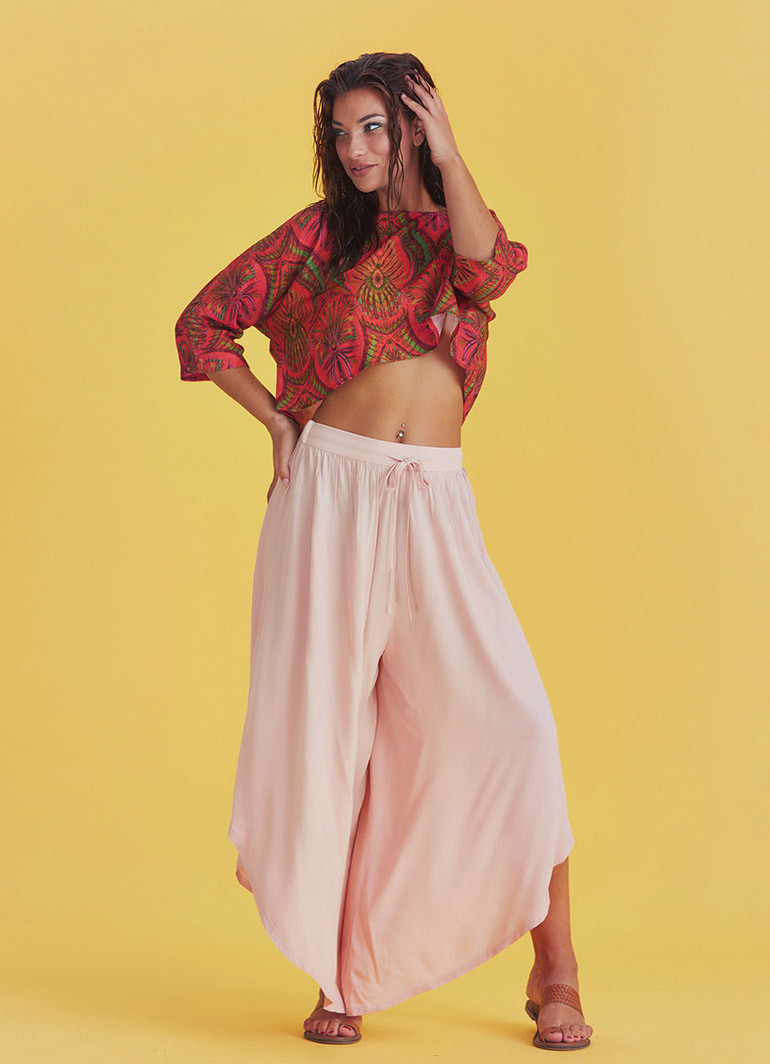 Beli Lastikli, Bağcıklı, Paça Detaylı, Bohem Stil, Bol Pantolon