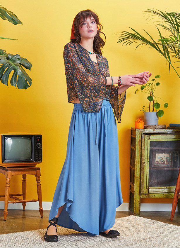 Beli Lastikli, Bağcıklı, Paça Detaylı, Bohem Stil, Bol Pantolon