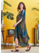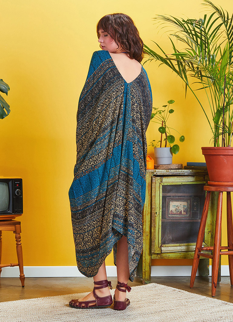 Petrol Desenli Sırt Dekolteli Bohem Yazlık Elbise 5247