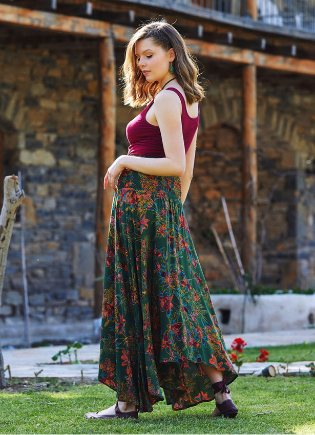 Geniş Gipe Bel Detay, Kuşaklı, Asimetrik Kesim, Desenli, Salaş, Uzun Etek