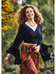 Volanlı Kol Ucu Detaylı, Bağlamalı, Kruvaze Yaka, Uzun Kollu Crop Bluz