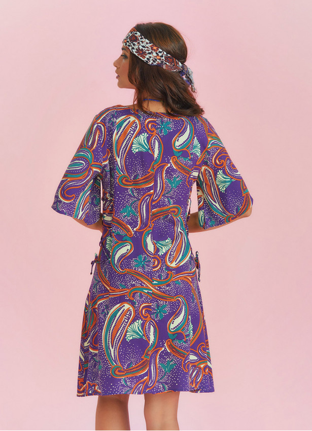 Yandan Bağlamalı, Çapraz Bağcıklı, Volanlı Yarım Kol, Kısa, Kare Yaka Elbise